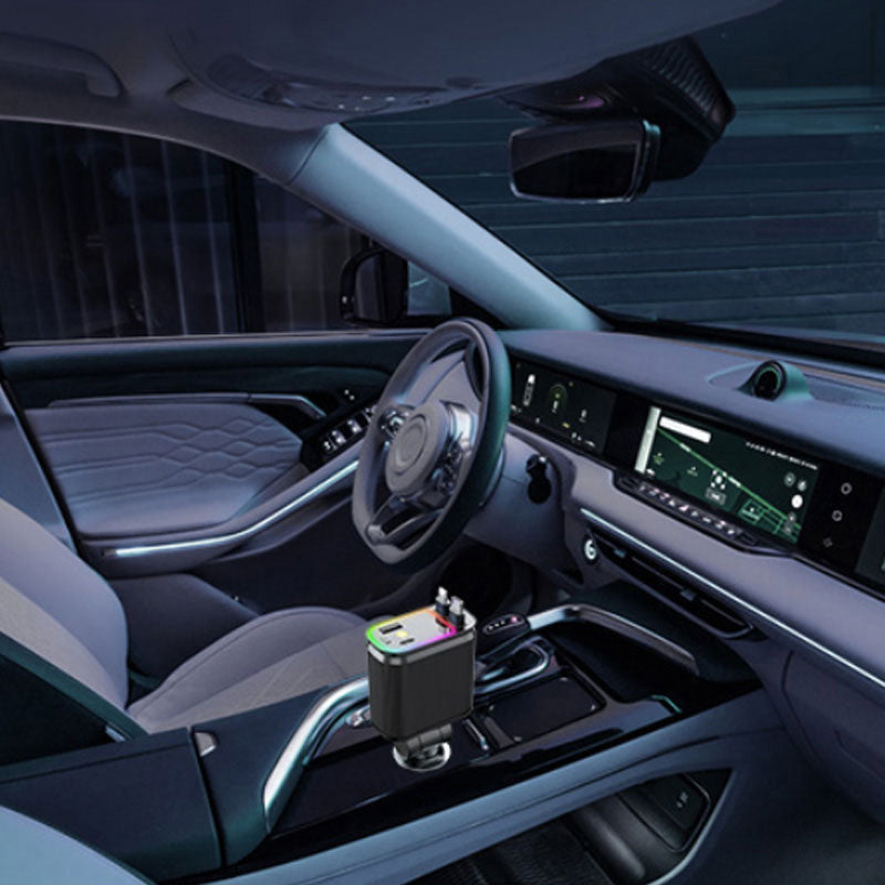 120W Purple Star Top Ambient Light Car Charger with Retractable Cable