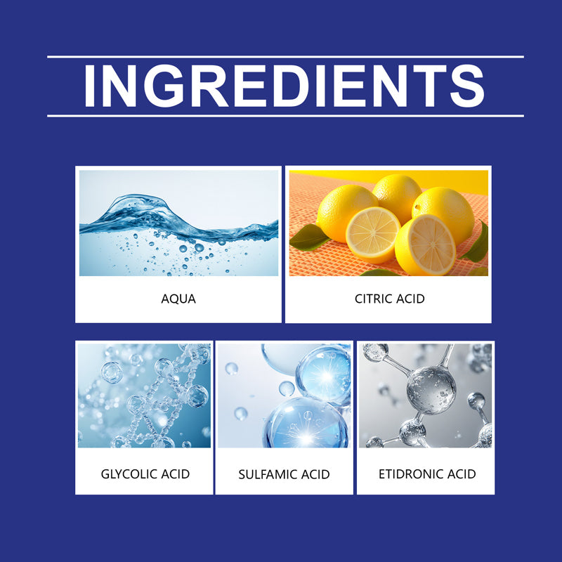 Main Ingredients: Water, Citric Acid, Amidosulfonic Acid, Glycolic Acid, Hydroxyethylidene Diphosphonic Acid